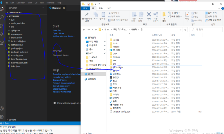- 아이오닉 기반 언어인 node.js를 설치했고