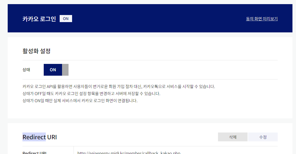 - redirect url 추가