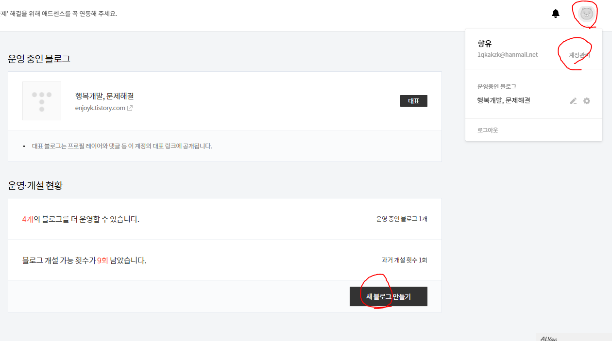 2. 하나의 계정으로 다수의 블로그 생성 방법