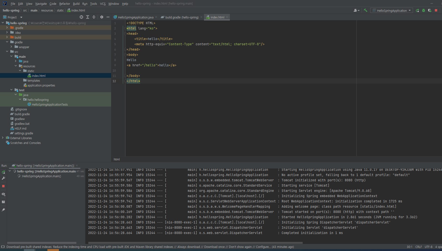 static 에 index.html 로 메인 페이지 기본 view 생성