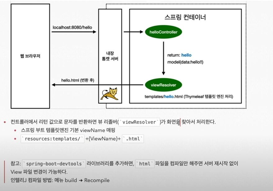 컨트롤러 return 시 뷰 리졸버가 리소스/templates에 / "뷰네임 변수" .html 로 데이터 전달!