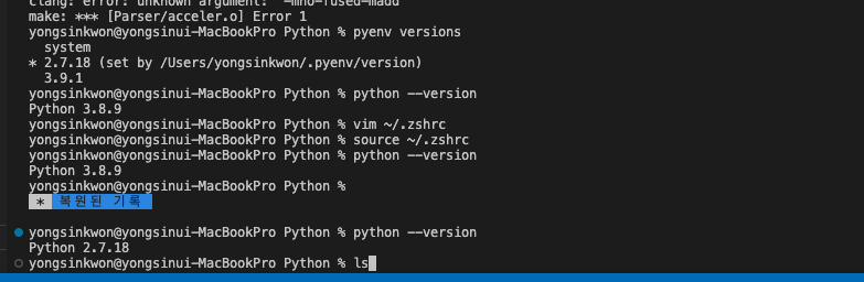 - python 경로 문제 (pyenv 설치 후 PYTHON_PATH에 경로 기재)